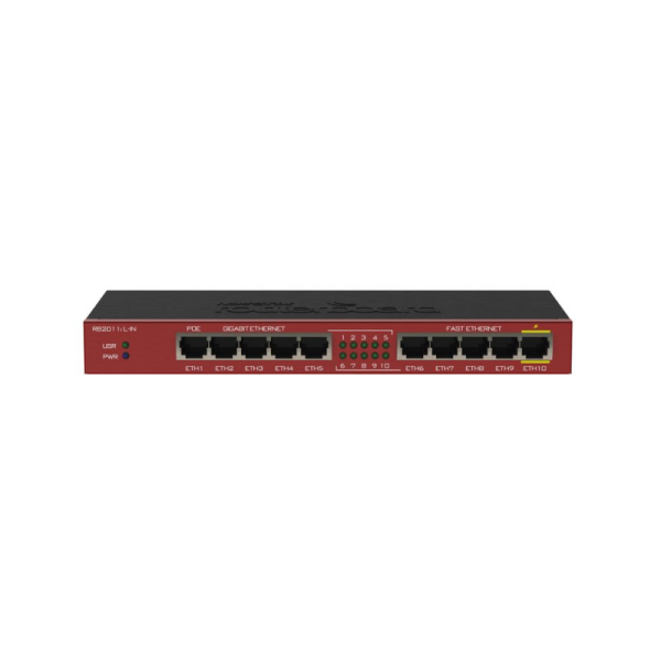 RB2011iL-IN je najosnovniji model, sa pet gigabitnih eternet portova, pet brzih eternet portova, utičnicom za napajanje i podrškom za PoE.