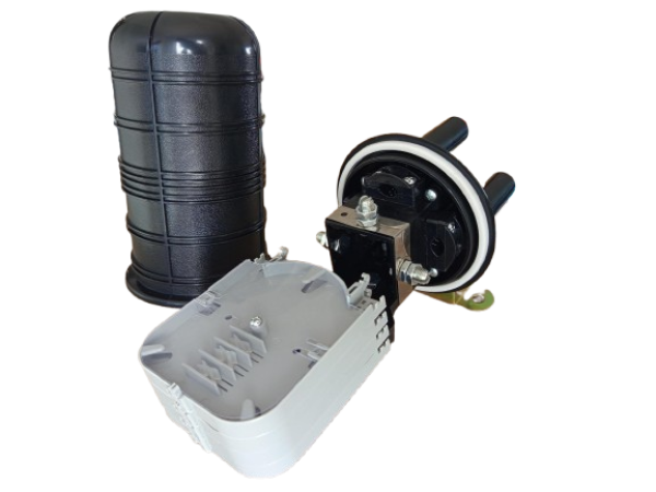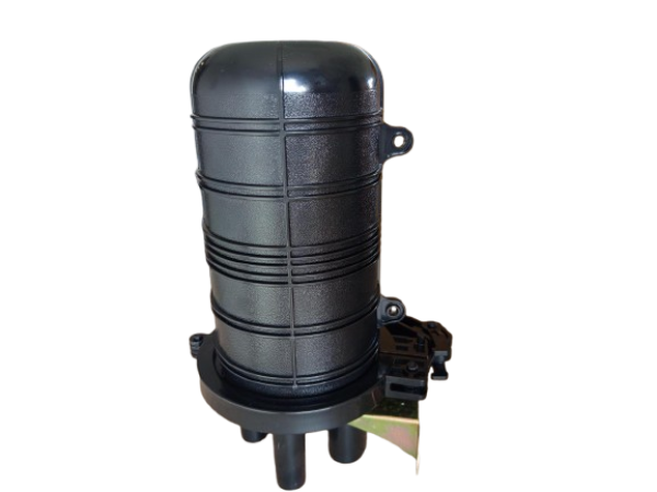 Fiber optička spojnica do 24 fiber vlakna opremljena potpuno hermetičkim, termički zavarenim ulaznim/izlaznim otvorima. Koristi se za zaštitu optičkih kablova. Kućište male veličine napravljeno od visokokvalitetnog plastičnog materijala otpornog na UV zračenje, niske (-40°C) i visoke (+65°C) temperature i hemikalije što ga čini pogodnim za vazdušne, kanalske i podzemne instalacije. Ima stepen zaštite IP68. Dizajniran je tako da bude jednostavan za instalaciju. Metalni delovi su napravljeni od materijala otpornih na koroziju. Visina: 300 mm. Prečnik: 120 mm.